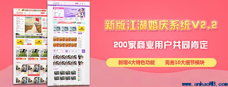 江湖婚慶門戶系統(tǒng)新版V2.2將于近期正式上線,這是合肥江湖信息科技有限公司繼《江湖婚慶系統(tǒng)V2.0》之后的又一力作。相比較前面老的版本,新版本中做了很多的功能完善和優(yōu)化,不管是從用戶體驗中,還是功能完整性,都有很大的提升。