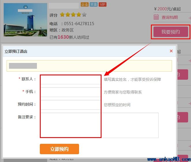 1、用戶有意向,點擊在線預約,留下姓名,手機和其他聯(lián)系方式;