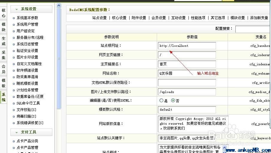 4.進 系統(tǒng)—系統(tǒng)基本參數(shù)—填好你的根網(wǎng)址 。。記住后面別加 / 和其他的參數(shù)。