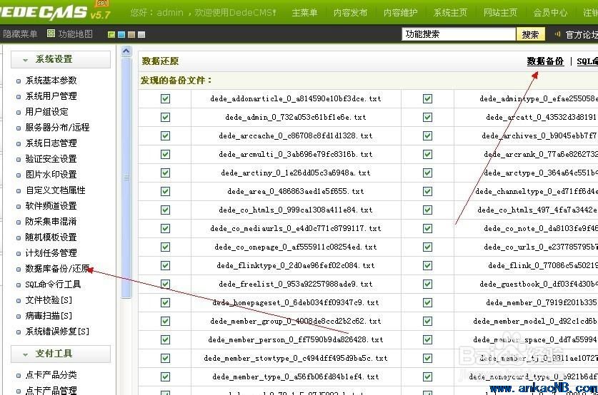 4.進入后臺,點擊“系統(tǒng)”-“數(shù)據(jù)庫備份/還原",執(zhí)行“數(shù)據(jù)還原”即可。