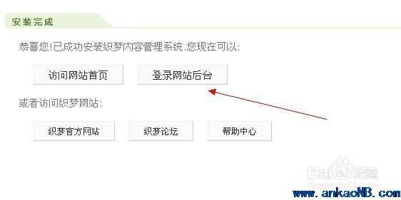 3.安裝完成,點擊進入后臺。(如出現(xiàn)錯誤頁面可 直接 域名/dede進入后臺}