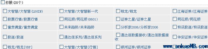 對于內(nèi)網(wǎng)員工訪問各種網(wǎng)頁的行為,通過內(nèi)置URL庫,關鍵字過濾等方式進行管控。對于采用SSL方式加密的網(wǎng)頁,如釣魚網(wǎng)站等,證書驗證鏈接黑白名單技術同樣可以管控。安全網(wǎng)關不僅可以對員工使用WEB、FTP、EMAIL等常用服務進行控制,通過深度內(nèi)容檢測技術,根據(jù)應用數(shù)據(jù)包四層到七層的特征碼,實現(xiàn)對QQ、MSN、SKYPE等IM聊天工具,BT、電騾等P2P下載工具,PPLive、QQLive等在線影音工具,網(wǎng)絡游戲,在線炒股等網(wǎng)絡應用行為進行管理和控制。具有國內(nèi)全的應用協(xié)議識別庫,例如對IM聊天工具、炒股軟件的識別庫如下: