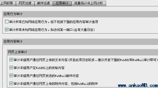 談到安全問題時,大多數(shù)人都只關注外網(wǎng)安全,但其實機構(gòu)的信息資產(chǎn)更多的不是被黑客竊取,而是通過內(nèi)部泄漏的。上網(wǎng)行為管理設備完善的訪問審計和監(jiān)控功能能夠有效防止信息通過Internet泄漏,并建立強大的內(nèi)部安全的威懾,減少內(nèi)部泄密的行為。對于郵件類型的應用采用了深信服“郵件延遲審計”的專利技術來保證先審計后發(fā)送;對于通過Webmail站點發(fā)送郵件,全面記錄郵件正文和附件等;對于QQ、MSN等聊天內(nèi)容提供了全面的記錄功能;對于BBS、論壇發(fā)帖不僅根據(jù)關鍵字進行過濾,成功發(fā)布的內(nèi)容也能全面記錄;內(nèi)網(wǎng)員工訪問的URL地址、網(wǎng)頁標題、甚至整個網(wǎng)頁內(nèi)容,AC也能夠完全監(jiān)控和記錄等。訪問審計/監(jiān)控模塊為機構(gòu)構(gòu)筑了強大的內(nèi)部安全屏障。針對不同的用戶、用戶組,通過數(shù)據(jù)簡單的勾選,即可完成差異化的行為審計功能